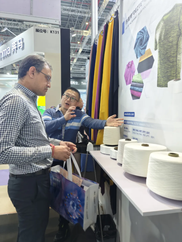 V stánku je v tichosti rozložená bohatá matica produktov – od vysoko elastických športových vlákien po mäkké a k pokožke šetrné domáce vlákna a udržateľné produkty, ktoré integrujú funkčnosť a ekologické koncepty. Za každým exponátom je hlboká reakcia na segmentované scenáre. Spomedzi nich je „technickou chrbtovou kosťou“ stánku nepochybne elastické kompozitné vlákno PET/PTT s riadeným bambusovým klzným vláknom značky „Dizente“. Rozbíja tradičný jednotný výraz elastických vlákien a vnáša rytmický pocit napätia a relaxácie do tkaniny s kontrolovateľnou štruktúrou bambusových klbiek.