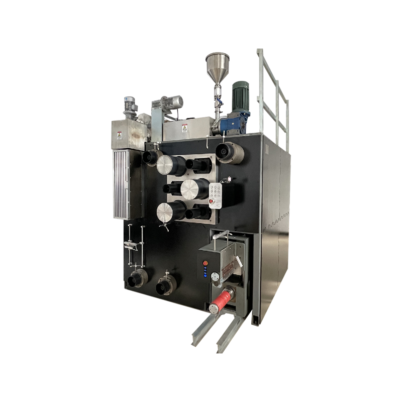 Tento spriadací stroj je základný typ spriadacieho stroja, ktorý mení jednu zo skrutiek v systéme s dvoma závitovkami na súbežne sa otáčajúci trojzávitovkový extrudér, ktorý je vybavený posilňovacím čerpadlom a zmiešané materiály možno odstreďovať bez granulácie. Je obzvlášť vhodný pre výskumné inštitúcie, podniky s chemickými vláknami a univerzity na štúdium procesov formovania rôznych materiálov, ako sú PET, PA, PP a PLA.